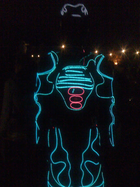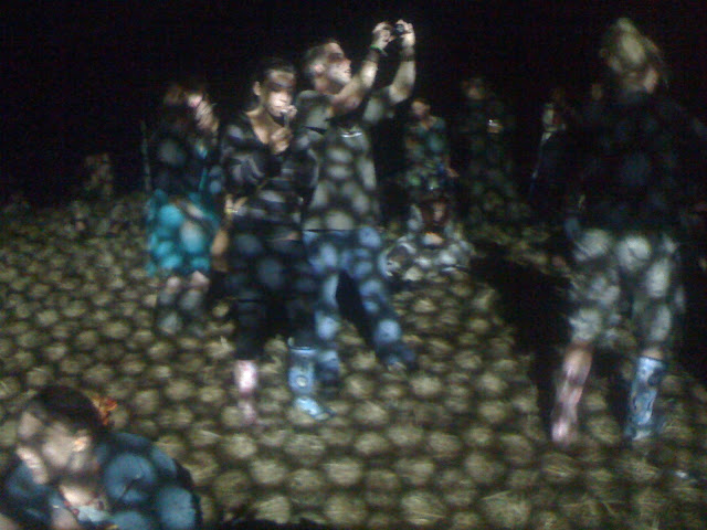 Costumes are extraordinary: restoration dandies, robocop, psychedelic robin hoods, flamenco dancers, plushies and of course every other person has dreadlocks. Another snapshot: people trying to row a dinghy across the grass.