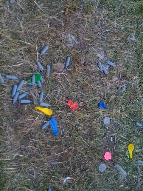 The other drug du jour is Nitrous Oxide or laughing gas. Balloons litter the grass. Teenagers sit in circles holding dispensers, sucking on balloons. I tried one. I felt ill as if I was emerging from general anaesthetic. It costs £2.50p a pop.