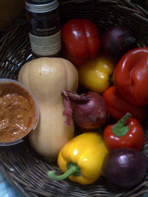 Finally some fresh coriander, some dodgy harissa (with peanuts???) I bought at the South Bank food festival that I wanted to get rid of.