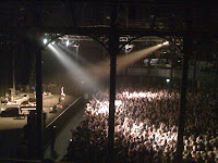 We waited sometime for ‘Jamie’ to reach the stage, so long in fact that Camille wondered aloud if he had got lost or not been allowed access by security. Finally Jamie arrived in the spotlight, revealed as Jamie Cullum, the young British singer/ pianist. Bravely they jammed, Camille singing, Jamie using the piano as percussion. Whenever it didn’t seem to work, Camille would stop the proceedings and say: