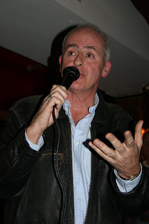 He breaks off to remark that he has never been to a meeting with so much alcohol involved. People cheer. The pub actually runs out of glasses and people are exhorted to bring back their empties so that more alcohol can be served.