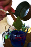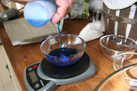 Then take 350 g of Blue Curacao (or whatever you have decided to use). Incorporate it into the Citrate/Sodium Alginate mixture. If you can leave this mixture a while to settle.
