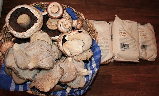 A mix of Portobello (brought from Portobello rd hehe), button and oyster mushrooms.