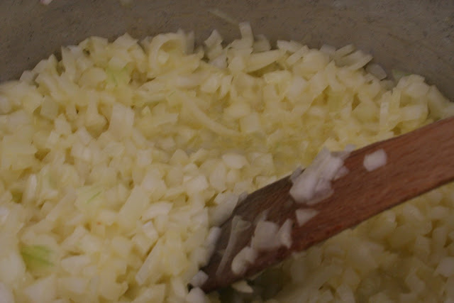 Adding equal parts double cream and milk for a frothy onion capuccino