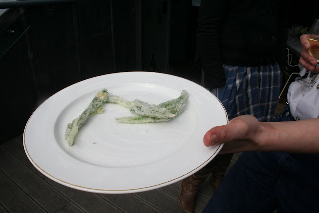 Stevie and his staff, dressed in red and white striped aprons, moved amongst the guests, handing out tempura battered sage. This was delicious, it’s a shame there wasn’t more. An idea I will happily nick.
