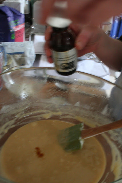 - Sift together flour/baking powder. Fold gently into mixture with vanilla if using. Do not overwork the mixture.