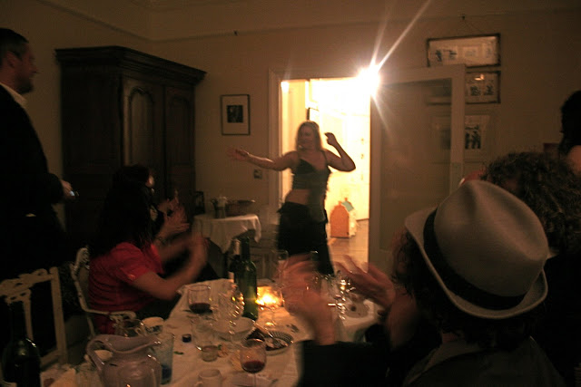 Probably the most successful and enjoyable Underground Restaurant so far. A small amount of people, only 11, as it is a holiday weekend, but after a slightly awkward start, I put everybody on a big table together, it was a laugh. Things were livened up by the presence of my friend Ben Emlyn-Jones who came with his girlfriend Susan. At some point in the evening, it was discovered that Susan is a belly dancer.