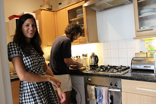 It has the feel of a well organised squat or commune, with other housemates and sofa surfers wandering around, strumming on guitars, picking at sewing on a picnic blanket, lounging in hammocks.