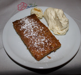 We finished with a plate of cheese; Cambozola (excellent), Pecorino and Talagio with home-made chutney, a Bath water biscuit and a herb encrusted wafer.