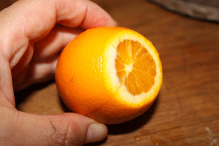 Cut the orange in quarters down to the pith