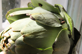 So, what to do with the leftovers? With the artichokes I made a dip, mixing the bottoms with creme fraiche, anchovy paste and mayonnaise. Serve warm.