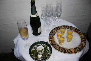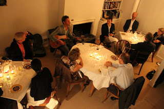 We are seated, after a selection of amuse-bouches, in traditional style, alternately man then woman. Halfway through the meal, the ladies stood up and swapped tables, a great way of getting to talk to everybody.