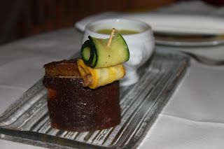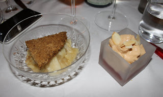 There were excellent matched wines (I loved the Bourgogne Chardonnay 2005 Jean Grivot)with every course, water from Les Vosges, an area of France that is mostly unknown to British tourists…