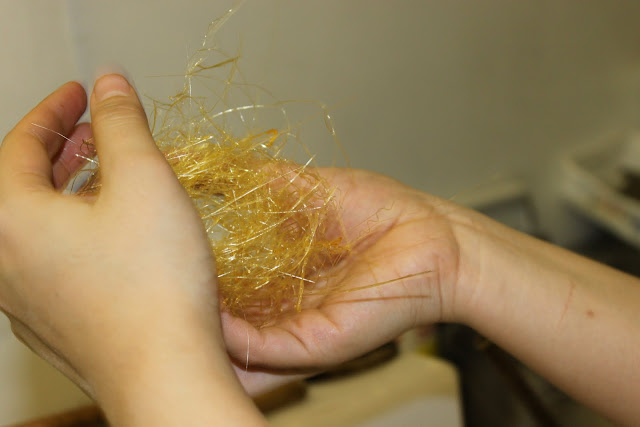 Toss the strands of sugar from one hand to the next, making a sugar ‘ball’.