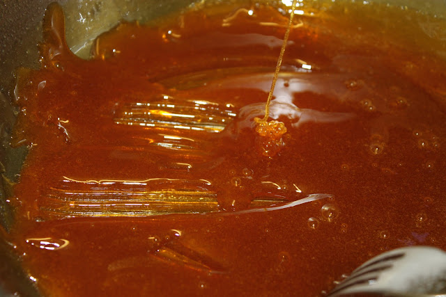 Looking at the stream of caramel coming down from the fork, is it fast? If it’s too fast, you need to wait.