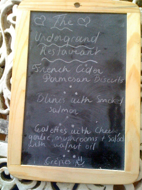 I had a tooth extracted on Monday and spent the day in a fog of Neurofen and pancake batter. In retrospect making crepes for 21 people was a little ambitious on an Aga which relies on the 80/20 rule: 80 percent of cooking should be in the ovens and 20 percent on the top burners. I was making crepes from 11 am till 5 pm on my trusty cast-iron crepière pan that I bought in France. The first batch consisted of a buckwheat and cider batter, crèpes au sarrasin(1). However the delicate frilly-edged doily of batter was difficult to turn over without breaking.(2)
