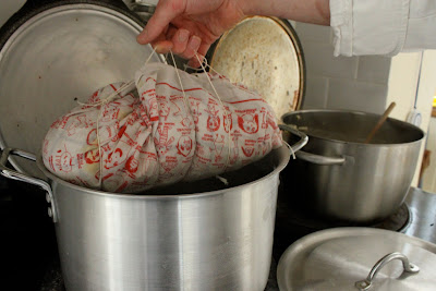 Wrapped tightly in a cloth, looking like Moses in the rushes, boil/steam for at least two and a half hours