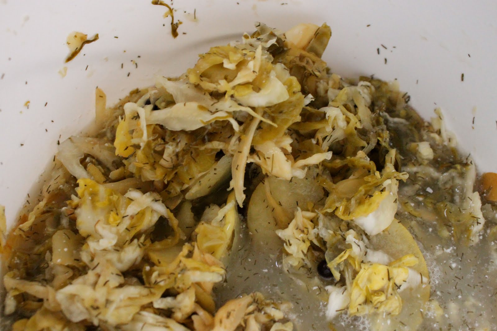 - I added finely sliced apples, dill seeds, Juniper berries. You can use whatever you like as flavouring, garlic, onion, seaweed, carrot, Brussel sprouts, beets, burdock roots. There are no rules.