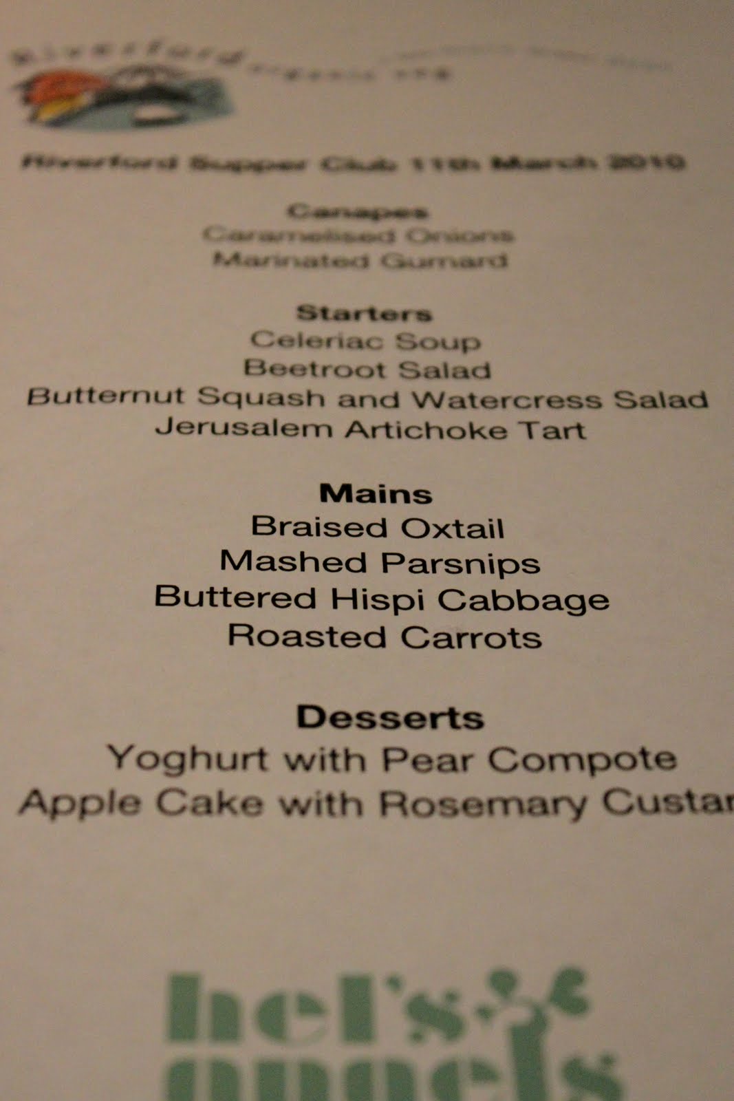 Riverford Organics has been running a few events, supperclubs, over the last months, designed to highlight their excellent produce (which I use). I was invited by their PR to come to this one at the Paddington Rec club house in Maida Vale, cooked by Notting Hill Brasserie exec chef Mark Jankel. That bloke knows his way around pastry I can tell you. The Jerusalem artichoke tart was so crumbly, so fine, so buttery. Many of the dishes were a bit obviously ‘I’ve got a ton of cabbage and what shall I do with it?’. The produce, rather than the imagination of the chef, came first which is fair enough.