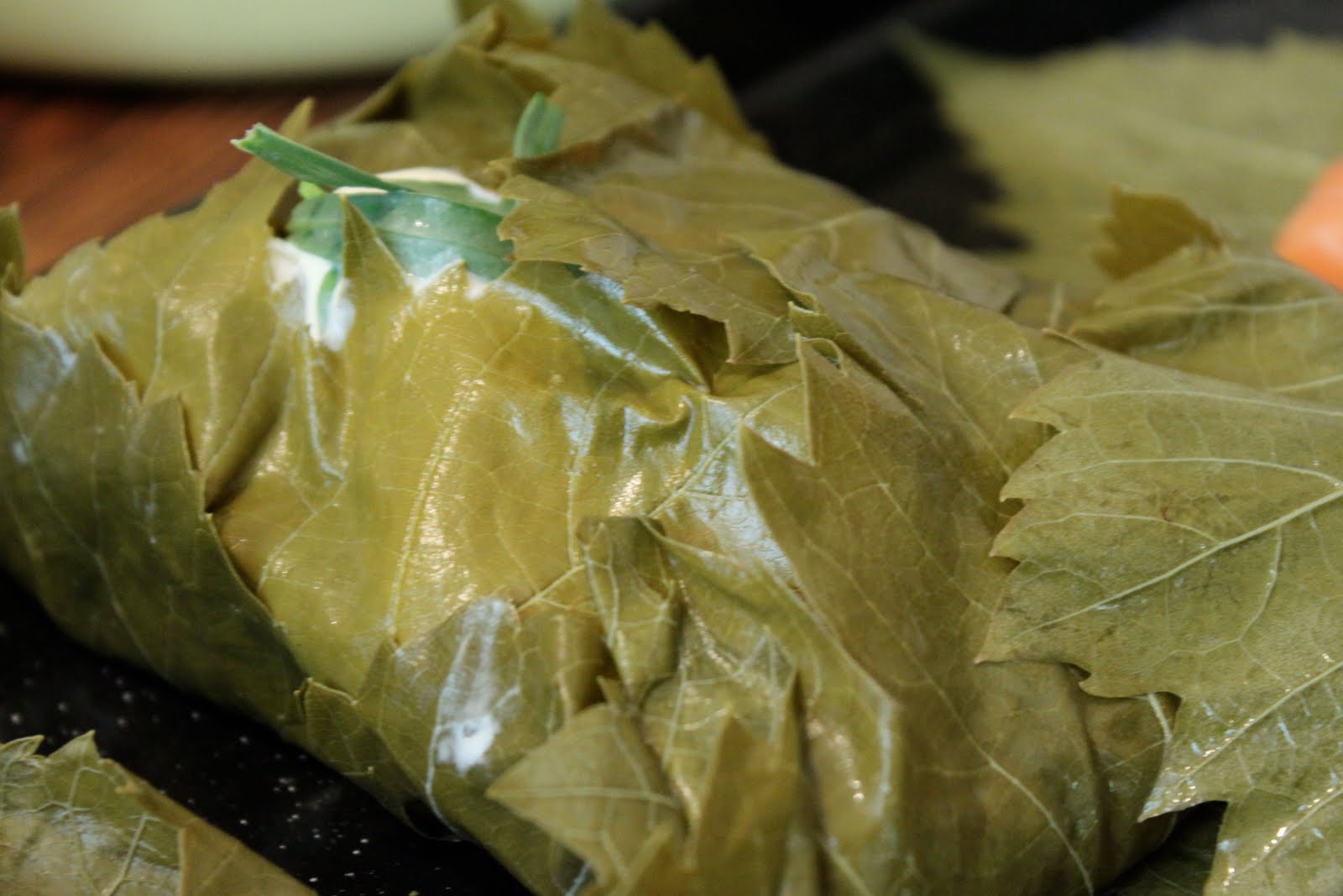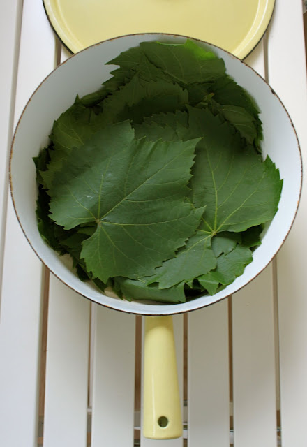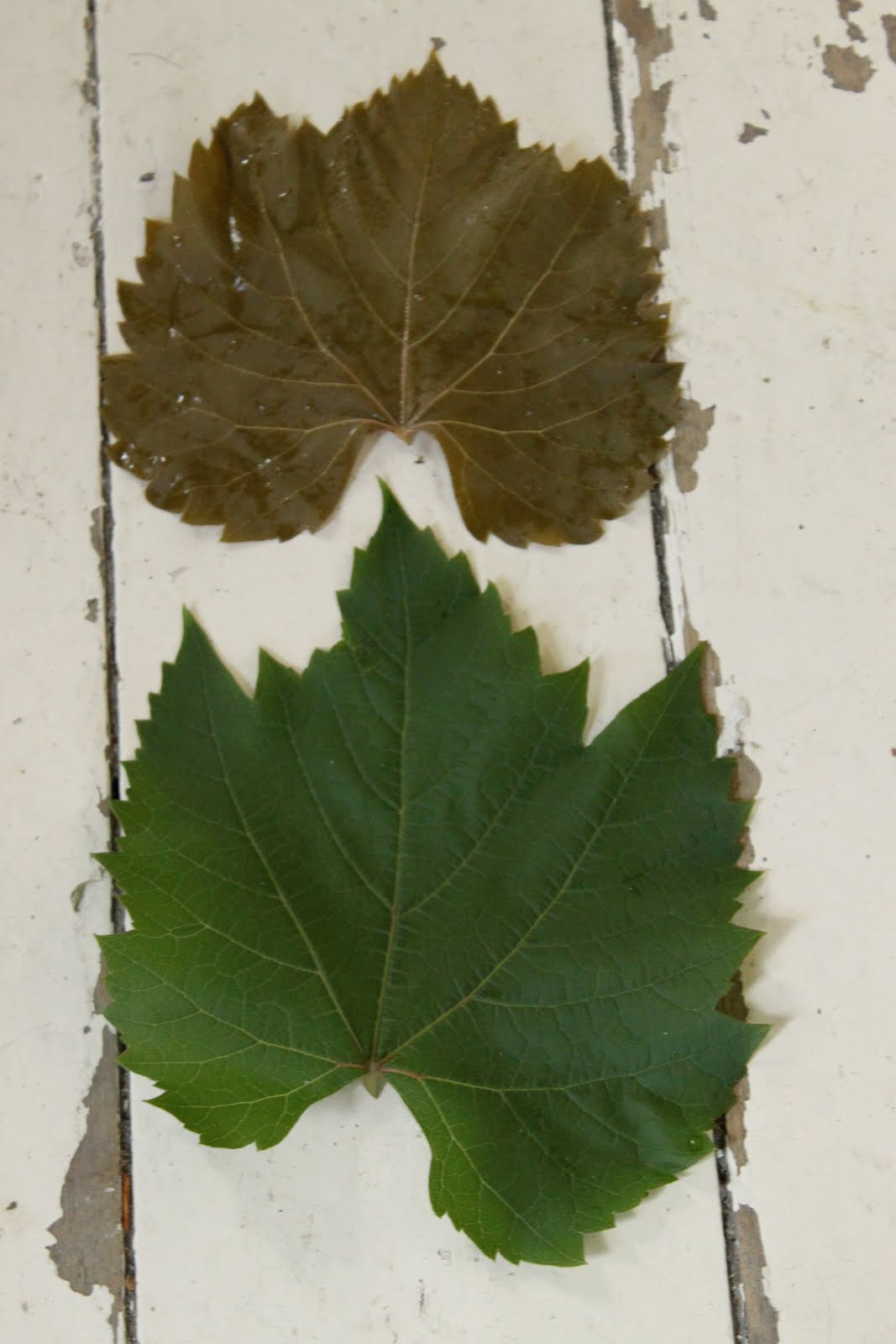 Blanched and fresh, khaki and green. The lemony qualities of the vine leaf really shine when the leaf is fresh.