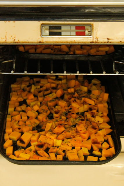 Roasting butternut squash in the Aga with thyme and pomegranate syrup
