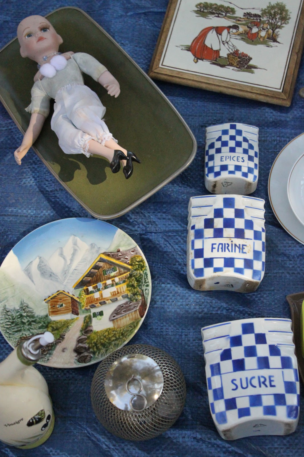 Vide-grenier means ’empty attic’, for in the old days an attic was where you stored your grain, hence ‘grenier’. It’s certainly a more romantic expression than car boot sale. In France you will hear several expressions for places where you can buy second hand things: brocantes; which generally consists of professional stall holders selling rather expensive antiques; marché aux puces or flea market, which is a mix of old clothes and antiques, often professionals. The best are vide-greniers where you get genuine amateurs; I’ve bought huge copper jam making pans from them for 4 euros, wood burning stoves in enamel for 10 euros, vintage pinnys for 3 euros, wet suits for a few euros, all kinds of bargains. There are guides you can buy and websites. One year I must make the effort to go to the Braderie de Lille, held the first weekend of September every year. This market apparently covers miles and goes on till late. A friend of mine rented a van, drove over for a weekend and returned with enough to furnish a whole house, brass beds, antique doors and all, at a knock down price.