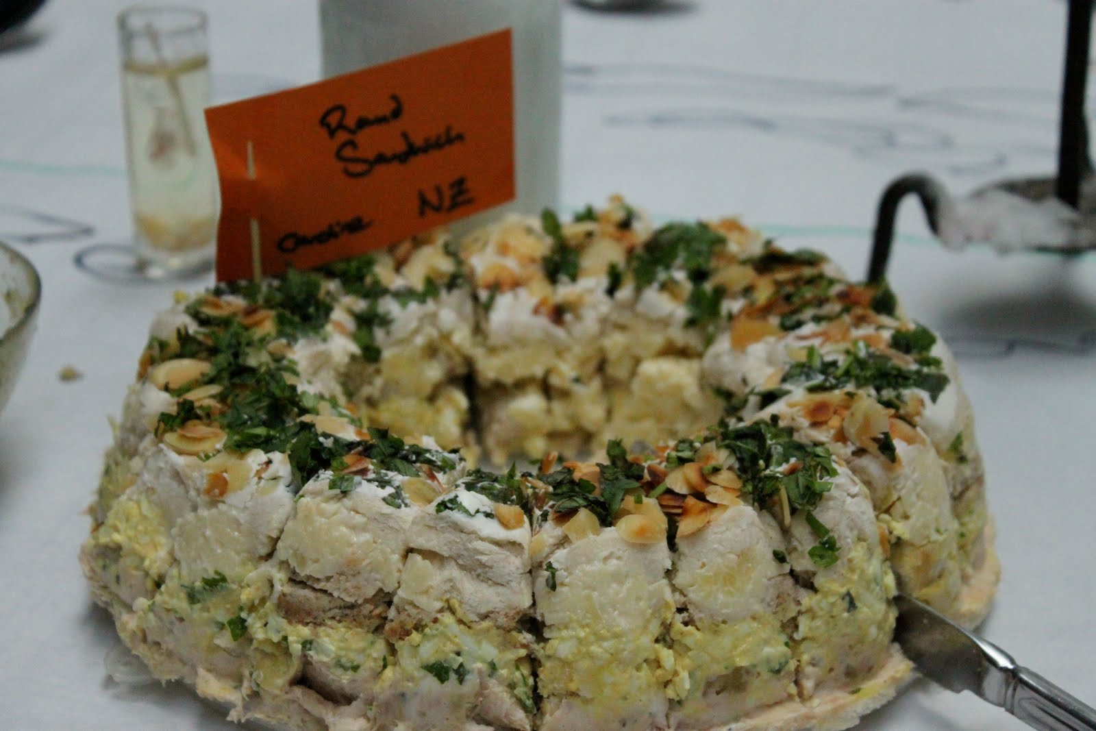Standing up at the beginning of each course, guests introduced their dishes, saying their name, where they came from and why they cooked this dish. One guest brought the first ever recipe, another said “I’m part Indian, part Scottish so it’s curried and deep fried”, a girl from Bologna announced that there was “no such thing as spaghetti Bolognese”. One of the most popular dishes was from the UK…’Coronation Chicken’ originally devised for the Queen’s coronation in 1953.