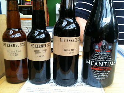 London Porter from The Kernal and Meantime to go wiv the John Cleese (cheese) course. Nice to have some Britneys (Britney Spears=beers) wiv cheese.