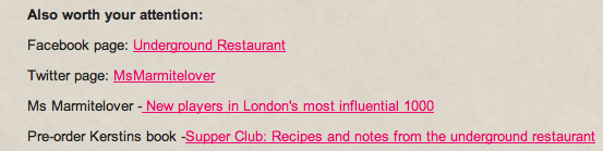 My book Supper Club: recipes and notes from The Underground Restaurant is now available for preorder on Amazon.co.uk. It will be out at the end of March 2011.
