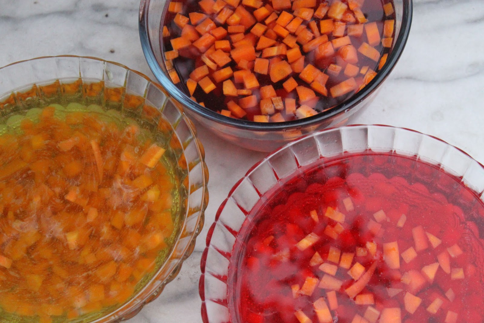 Salad in jello: lime, blackcurrant and raspberry as recommended by Shelley Von Strunckel, the American astrologer.