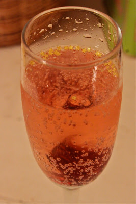 Champagne with hibiscus flower and edible gold stars