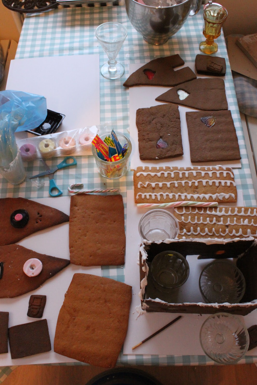 This last suggestion has been taken on board however and I spent three days making a village, or perhaps a favela, of gingerbread houses. It wasn’t easy. My advice: straight walls, light roofs, proper right angles, make construction less jerry-built. Also you will need far more icing sugar to stick it all together than you can possibly imagine. Buy at least five boxes. You will spend a good deal of time holding things together with your fingers waiting for the icing to dry and propping up the walls with different height tin cans and glasses.