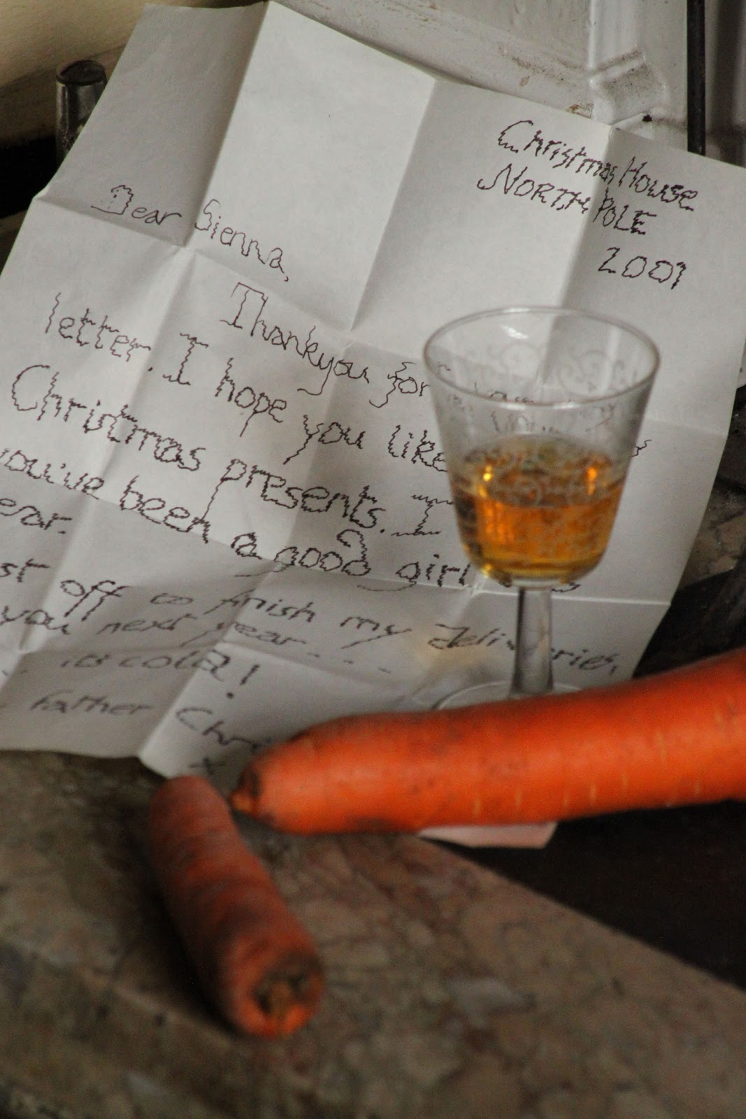 Christmas Eve: Remember to put out carrots for the reindeer and a glass of sherry for Father Christmas. If you are good you might get a letter from him, as my daughter did a few years ago….