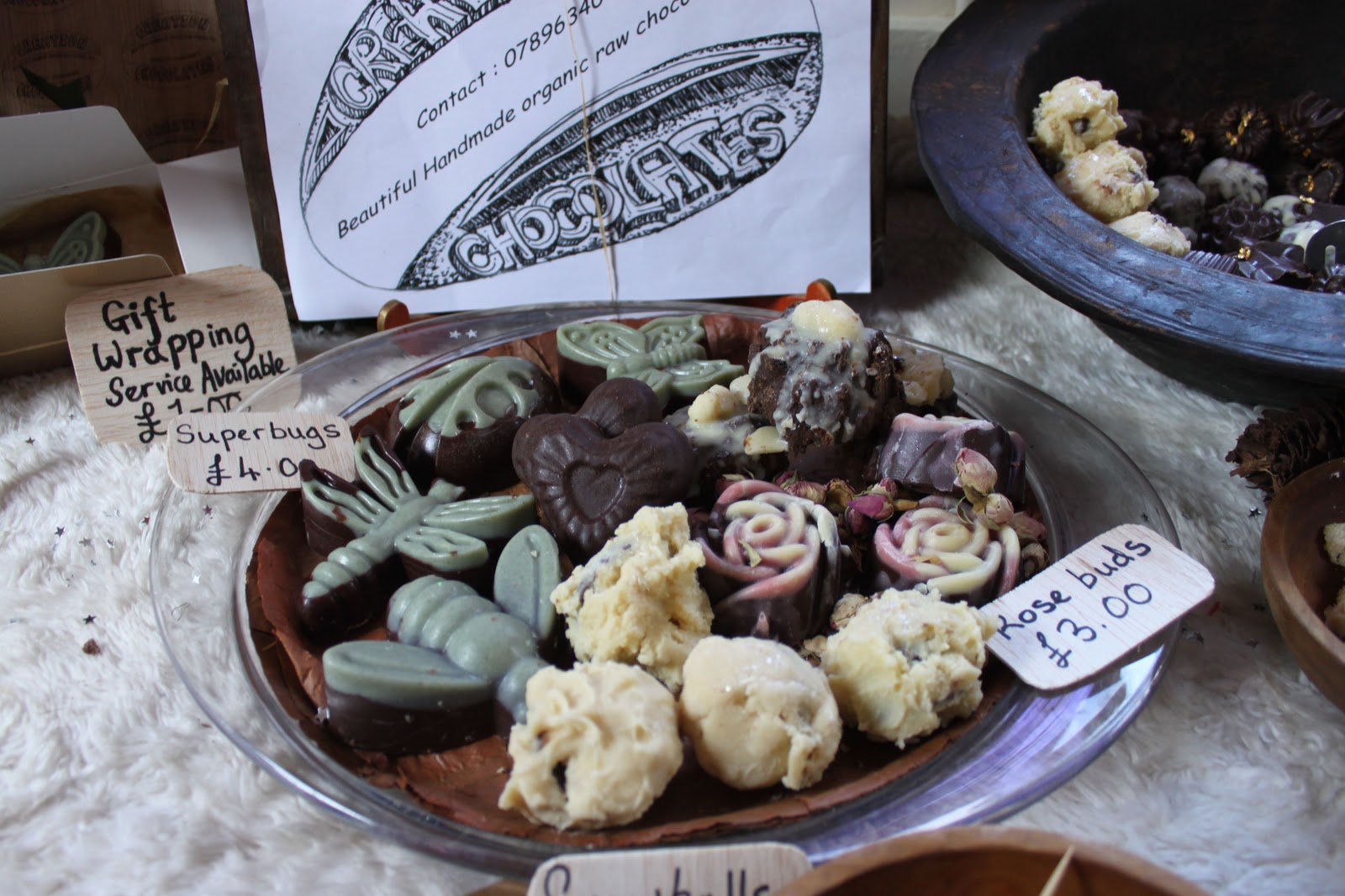 Urtema Dolphin selling her Goddessences (uplifting sprays using natural oils and coloidal silver) and Creation chocolates. I’ve known Urtema since I met her in Egypt in 2002. Travelling alone with my daughter I was overjoyed to meet another single mother on the road with her son, only a year younger. We spent the next six weeks together, it made travelling so much easier and more enjoyable. Urtema is a brilliant cook and singer, in fact she’s good at whatever she puts her mind to… Her council flat in Brixton is decorated like a magical forest. She impressed the Dragon’s Den panel with her beautifully crafted raw chocolates which have aura transforming properties!