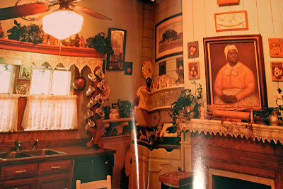 The book explores the breakfast and brunch tradition in the South, with beautiful but ’80s style photographs of four poster beds trimmed with lace in large elegant clapperboard colonial mansions and portraits of ‘mammy’ above the fireplace in the kitchen.