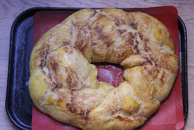 I found this King Cake recipe in a charity shop cook book ‘Hot Beignets and warm boudoirs’ by Chef John D. Folse CEG AAC, who sounds more like a confederate general than a cook.