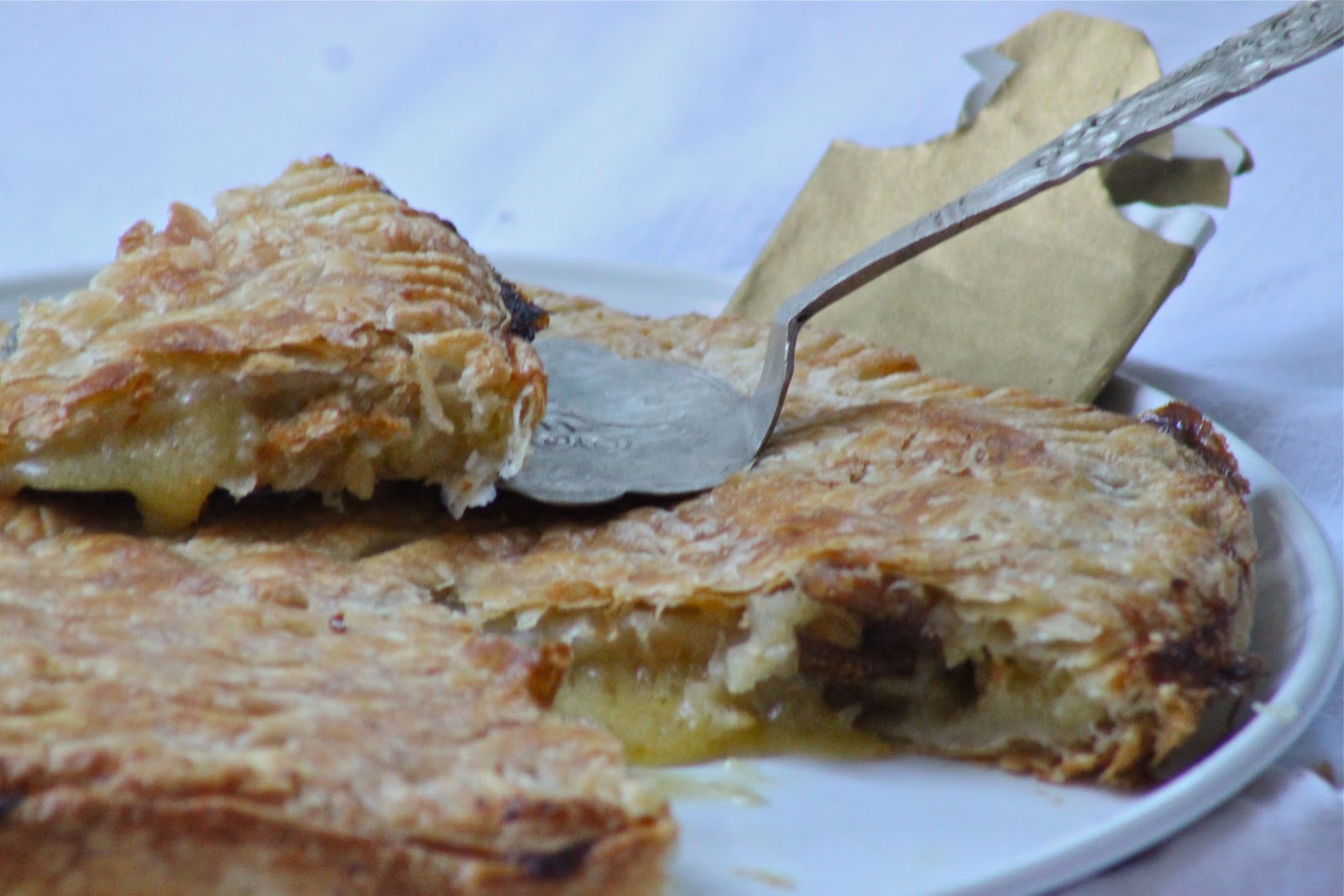 Divide the puff pastry into two. You can make your own, or buy very good butter puff pastry. I used some home made butter puff pastry made by one of the stallholders at my Underground Christmas Market: Cherry Pippin who supplies chefs with her fabulous pastry.