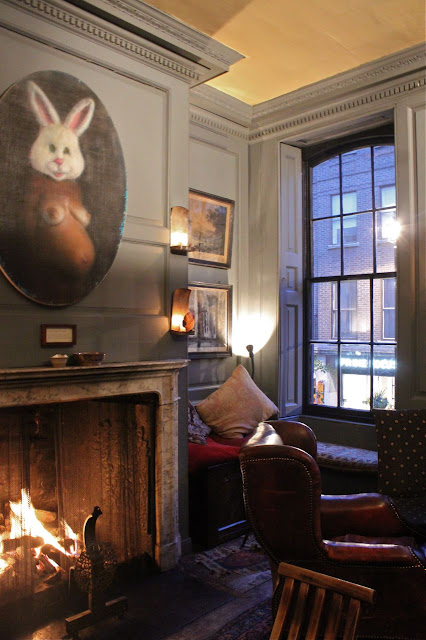 Blacks has the old Soho atmosphere of the Coach and Horses or The French pub, around the time that Jeffrey Bernard used to drink there. The light is pearly and dim, like a Dutch interior, each room lit up with a roaring fire, underneath which denizens of the club cackle and drink. On the uppermost floor, a four poster bed is draped with Indian rugs, for the use of member(s).