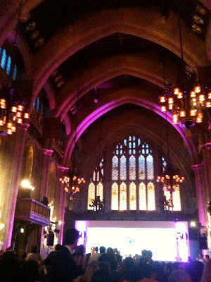 Head down, I wended my way to the great hall where they were serving drinks and canapés: the champagne was in magnums and the canapes were tucked into mini savoury icecream cones threaded into black perspex trays. The servers seemed to be buckling under the weight. Inside, Jay Rayner did a double take and said “I never thought I’d see you again. Well done, I’m impressed. Where is Gizzi?”