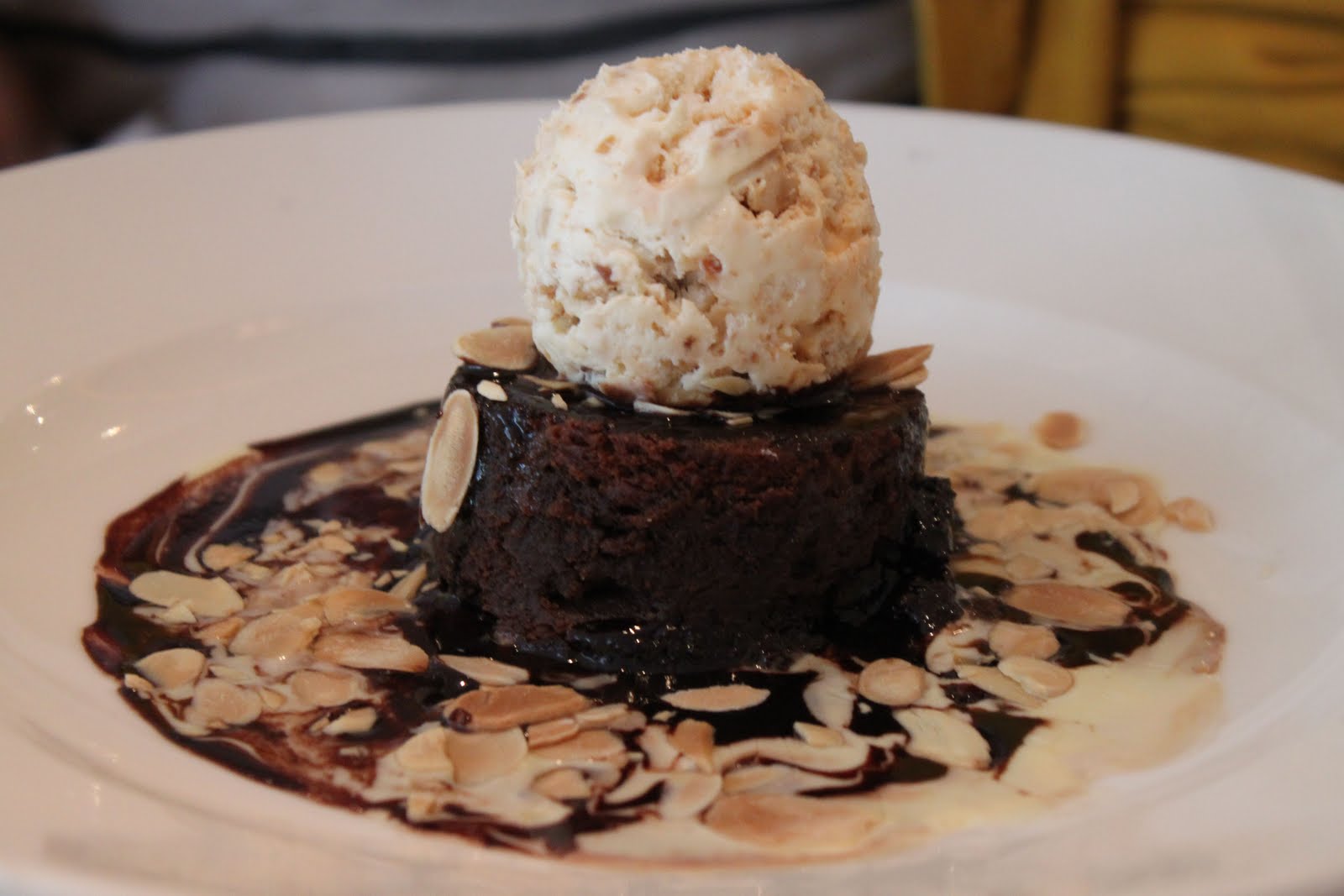 Chocolate fondant with almonds. Nice but bit ordinaire compared to the other puds.