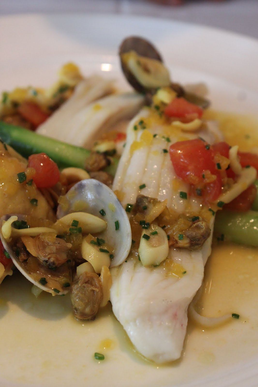 Skate with clams and asparagus and saffron. I would have preferred the skate roasted. But good flavours.