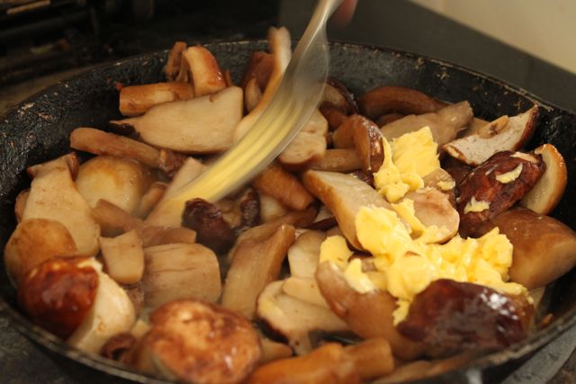 Wild mushrooms on toast with tonka bean and grated dark chocolate