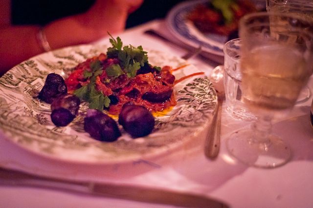Aubergine, butternut squash, plum tomato, blood orange in chipotle and chocolate with