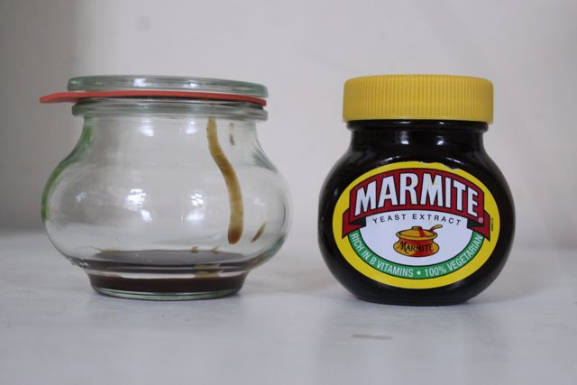 Re the colour, I have the advantage of cooking on an Aga, which means I can slow cook things for days, even months in different bits of the cooker. It took a couple of days to reduce my marmite to that colour.