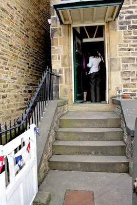 The entrance to her cute Yorkshire stone cottage.