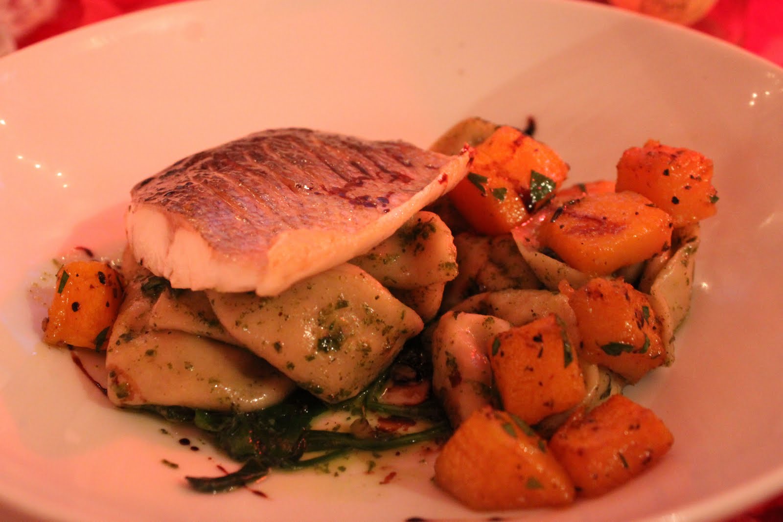 David and his sous chef made us a delicious dinner: sea bass with fresh pasta, tortelloni and butternut squash.