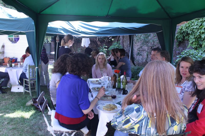 Meanwhile guest supped on coffee, tea, fresh juices (blood orange and watermelon) and home made pain chocolats and croissants. I was up till 2.30 am rolling them out in a sweaty kitchen with my new vintage ceramic rolling pin.