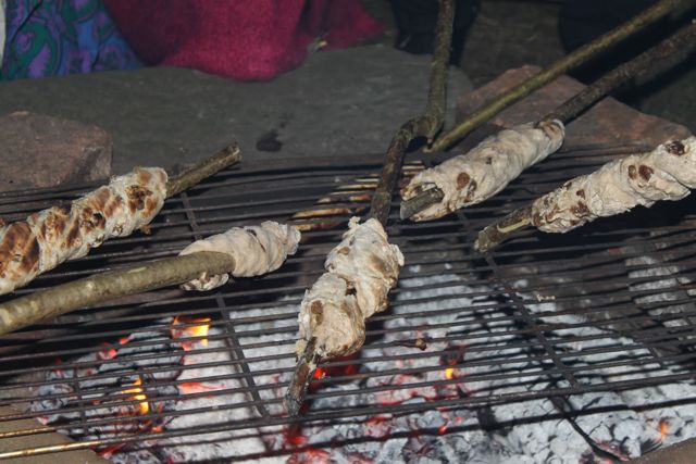 Nick got the diners involved in making sweet damper bread rolled around the hazel sticks.