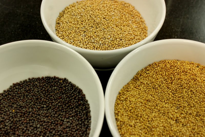 Mustard, one of the few spices native to Europe, is one of the oldest spices and like honey, it never goes off. There are three varieties of mustard seed: white, brown and black. White, the mildest, is often used in American mustard (say for hot dogs), brown is the base for  French mustard while black seed, the strongest, gives Indian cooking it’s piquancy.
