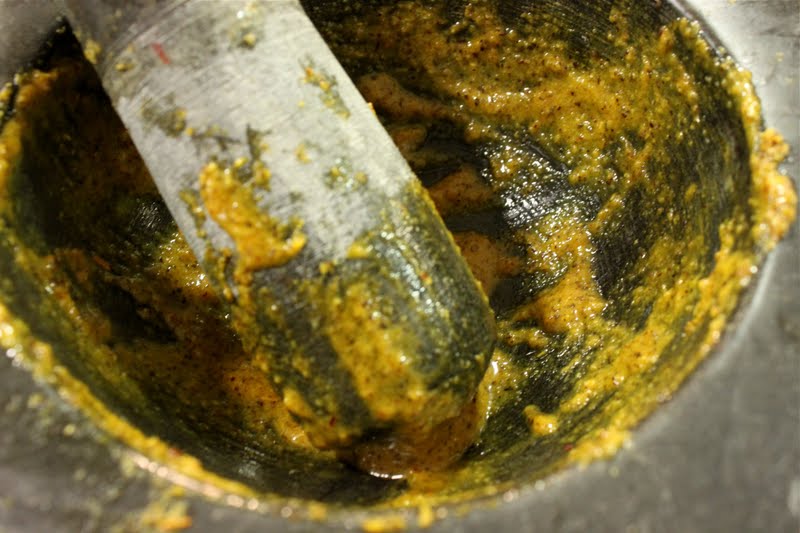 Then I ground in my mortar and pestle all the dry ingredients.